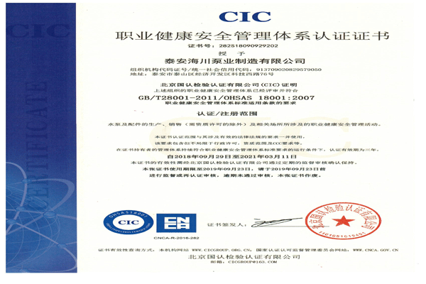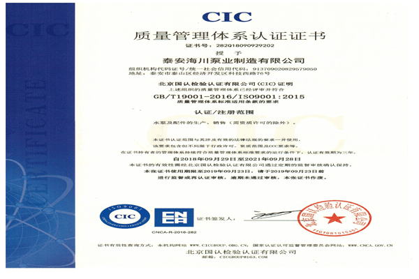 8月16日上午11:00,審核末次會(huì)議按計(jì)劃進(jìn)行。在會(huì)上審核組宣讀了審核結(jié)果:審核組認(rèn)為泰安海川泵業(yè)制造有限公司管理體系運(yùn)行有效,產(chǎn)品實(shí)物質(zhì)量滿(mǎn)足要求,售后服務(wù)滿(mǎn)意,相關(guān)資料充分,符合認(rèn)證的標(biāo)準(zhǔn)和相關(guān)認(rèn)證要求,推薦注冊(cè)。同時(shí),審核組提出了在30個(gè)工作日需完成整改的7個(gè)問(wèn)題。9月28日,我司把第二階段審核會(huì)議中審核組提出的需要整改的7個(gè)問(wèn)題整改完畢并提交給審核小組。確認(rèn)無(wú)誤后,正式下發(fā)環(huán)境管理體系認(rèn)證、職業(yè)健康安全管理體系認(rèn)證、質(zhì)量管理體系認(rèn)證三個(gè)相關(guān)體系認(rèn)證證書(shū)。